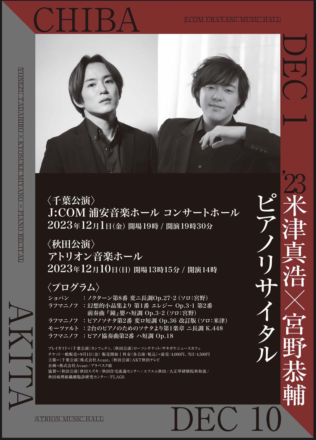 昨年東京オペラシティコンサートホールで共演した2人の再共演が僕の地元秋田で再現されます!